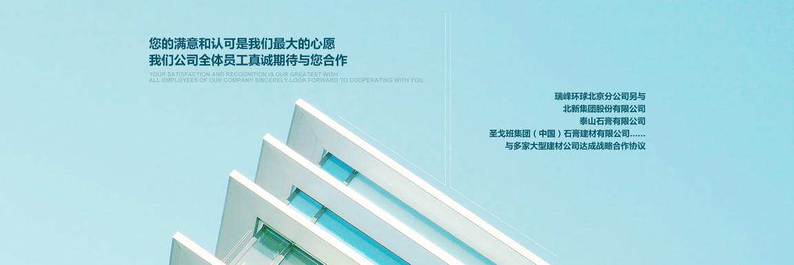 北京市朝陽區(qū)金盞鄉(xiāng)科鷹科技園內,是北京******的建材營銷商之一,專業(yè)銷售各種高檔建筑材料的現代化公司.本公司已與多家大型建材廠家達成合作協(xié)議:泰山石膏建材有限公司,北新建材有限公司,濱州綠邦有限公司,河北金秋有限公司,北京金隅砂漿有限公司,歐文斯科寧(中國)投資有限公司,湯姆節(jié)能建材(北京)有限公司等.更與國外泰國工廠生產的:美巖板,清水板,木絲水泥板,木紋木絲板……簽訂了國內經營權;與德國高新企業(yè)超薄石材簽屬超薄巖板國內代理權(超薄巖板,可彎曲石材,厚度1.5~2mm左右)與臺灣合作研發(fā)礦石板(以最好的效果提現礦石的效果).好的工程絕對少不了一個好的建筑材料,瑞峰環(huán)球攜手各大品牌為您的工程保駕護航.